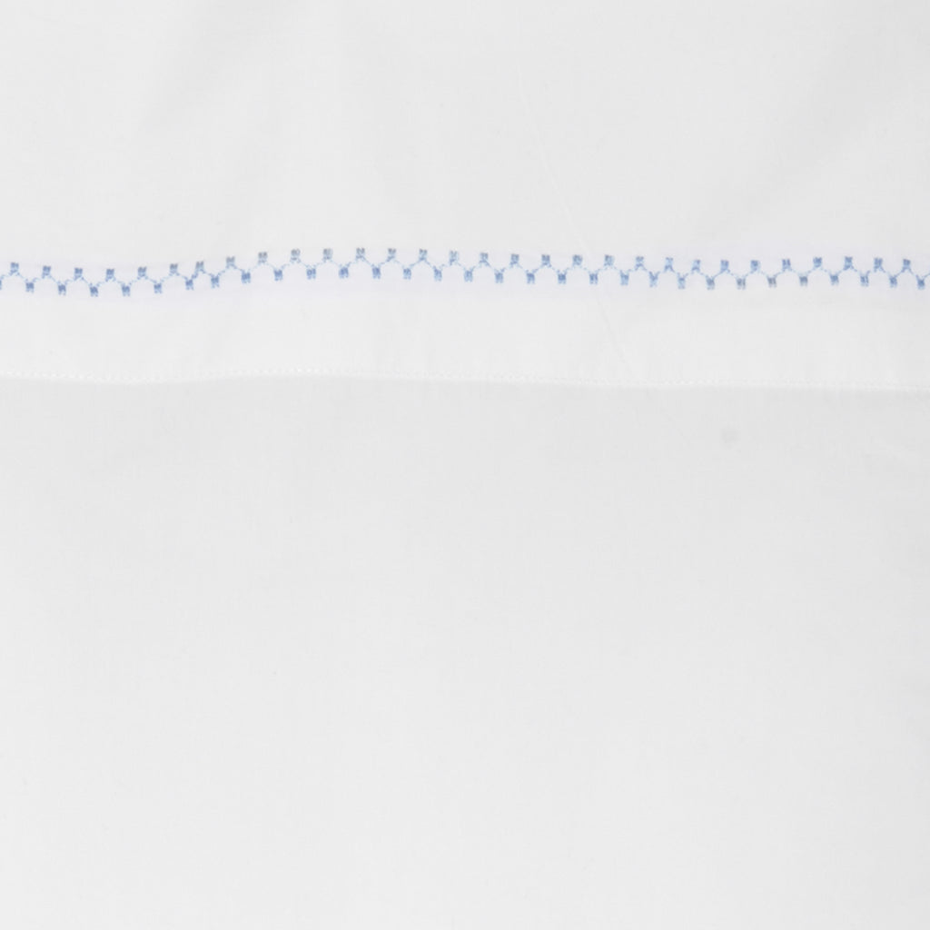 We enlarged one of our hand-embroidered designs in light indigo to create a subtle, playful pattern. Crafted from perfect organic percale cotton sourced from the southernmost depths of India, this sheet set boasts 100% long-staple fibers for a luxurious feel.