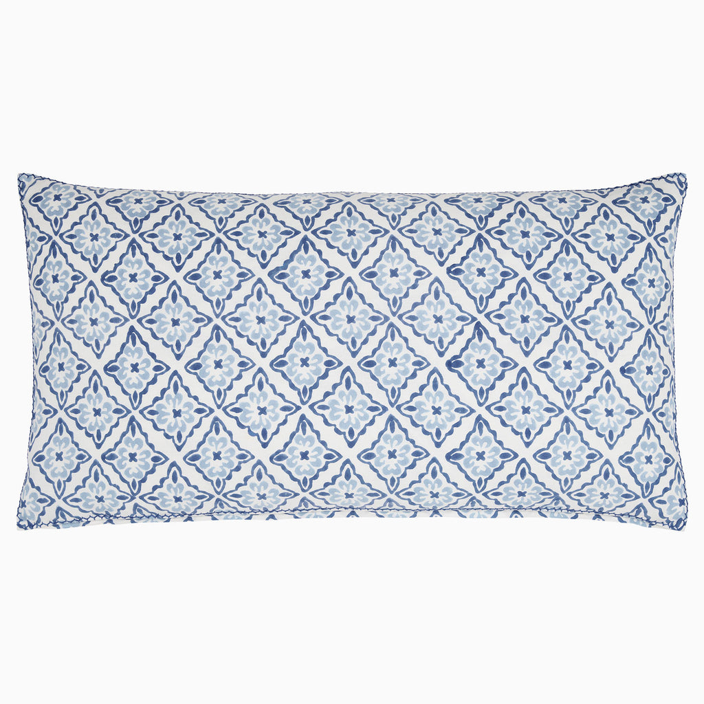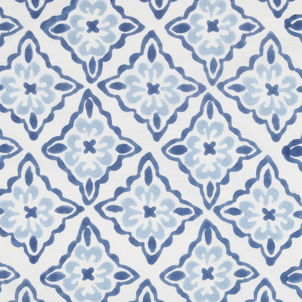 Sky blue florals arranged in a gentle lattice of hand printed medallions.